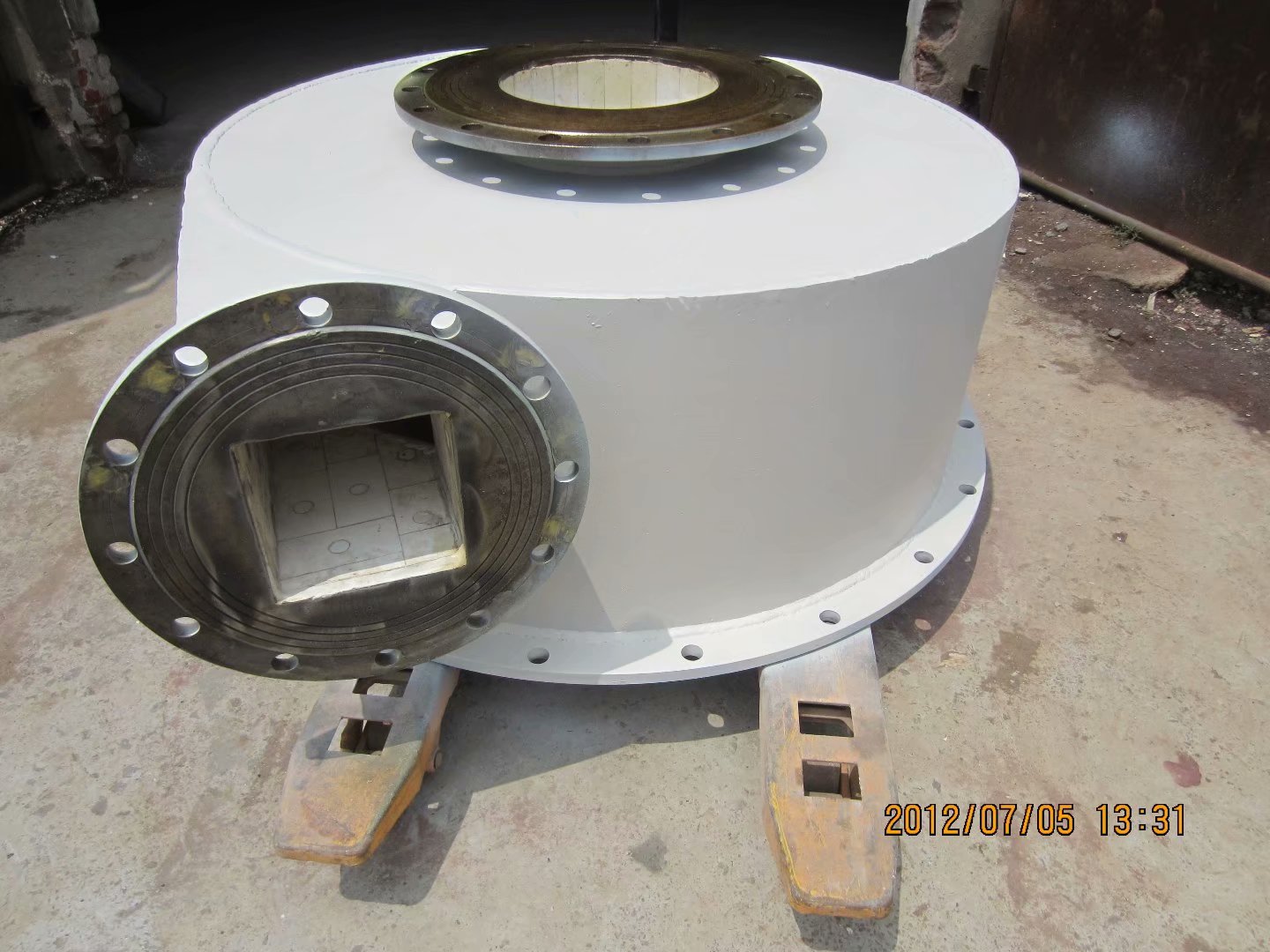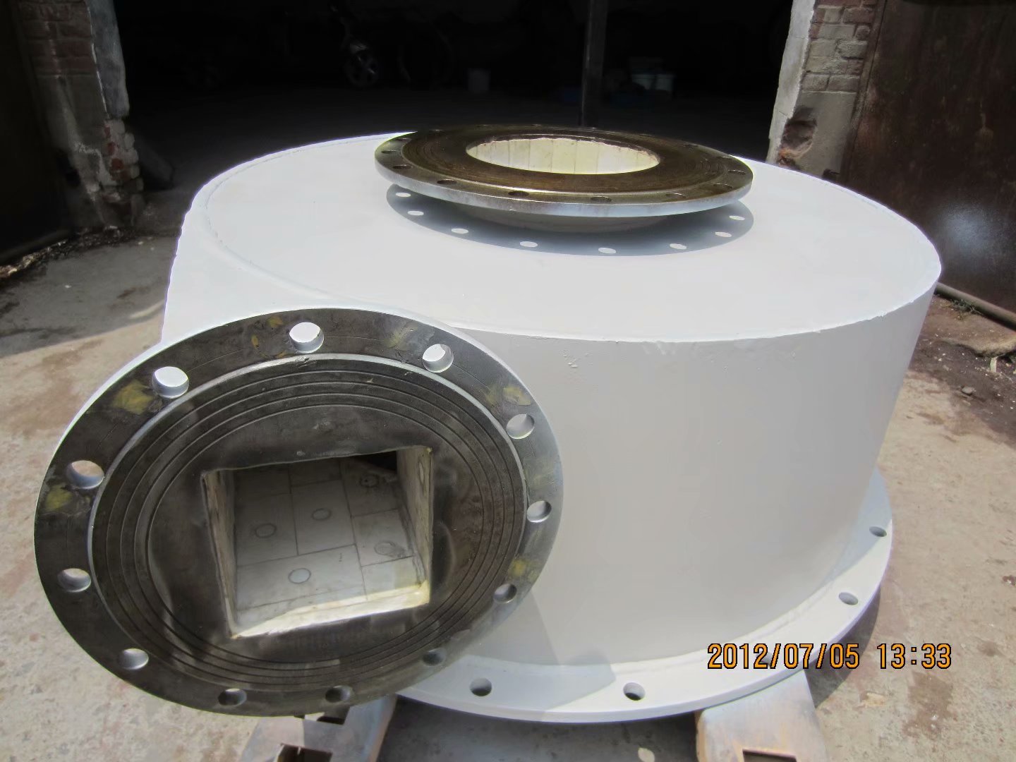 分離器是將煤粉和煤矸石分離的設(shè)備,當(dāng)混合料從方形入料口進(jìn)入分離內(nèi)形成旋流,對(duì)內(nèi)壁及內(nèi)管的外壁我磨損嚴(yán)重,普通的合金材料使用壽命在六個(gè)月左右,則需要重新更換新的設(shè)備。采用內(nèi)襯耐磨陶瓷的分離器,不僅延長(zhǎng)了設(shè)備的使用壽命,而且在陶瓷磨損到一定程度后,可以重新家裝陶瓷,而不需要重新整體更換設(shè)備,這樣既降低了檢修時(shí)間也節(jié)省了成本。